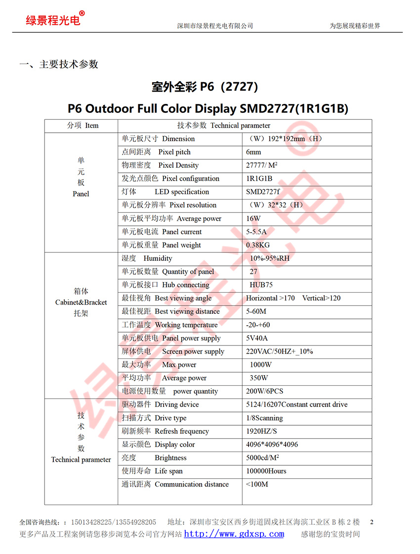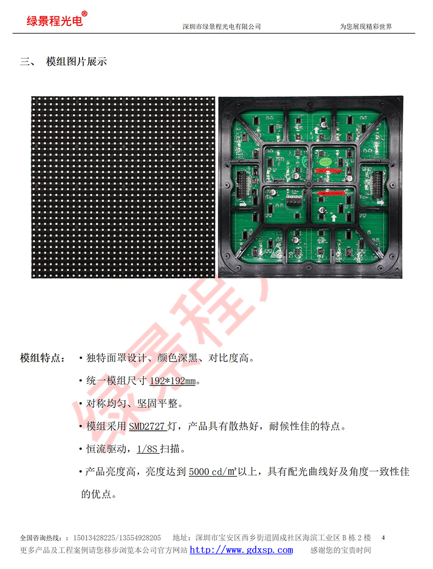 綠景程光電戶(hù)外前維護(hù)P6-SMD27127-8S-192X192mm