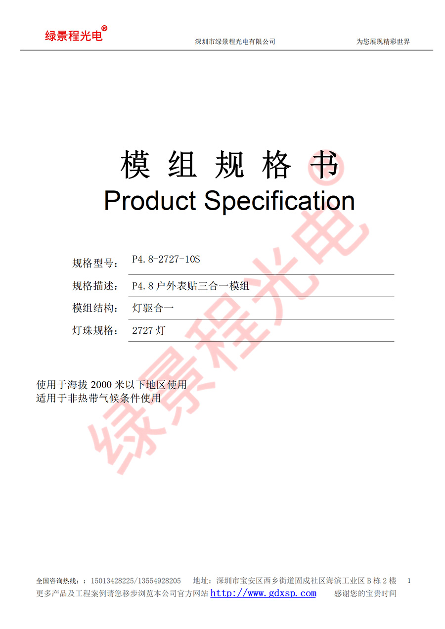 規(guī)格型號(hào):P4.8-2727-10S