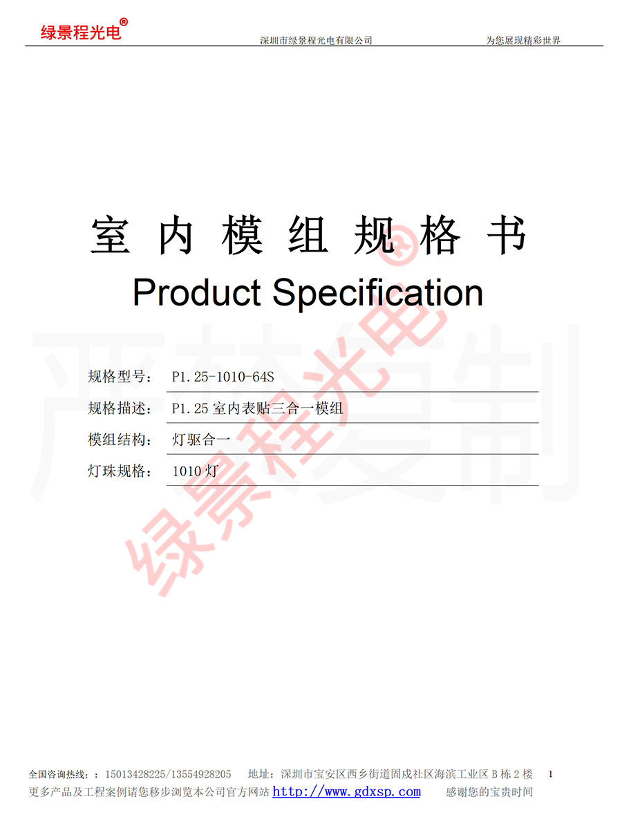 綠景程光電室內(nèi)P1.25-SMD1010-64S-320X160mm