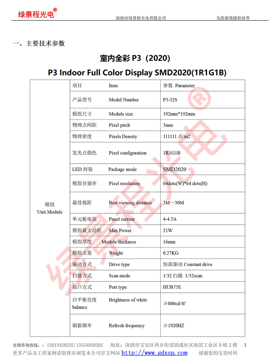 綠景程光電室內(nèi)P3-SMD2020-32S-192X192mm