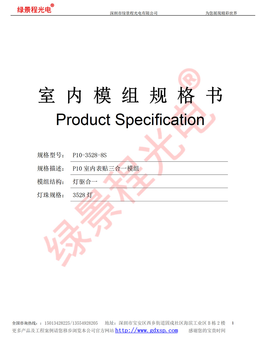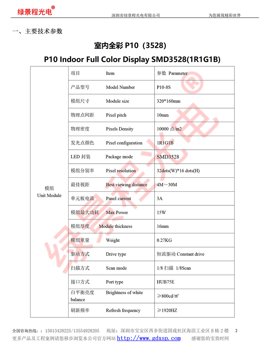 綠景程光電室內P10-SMD3528-8S-320X160mm
