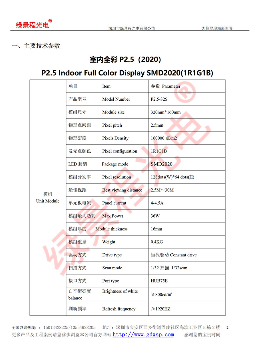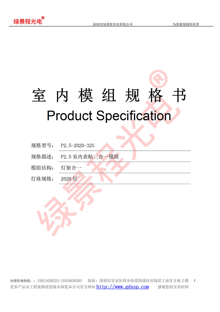 綠景程光電室內(nèi)P2.5-SMD2020-32S-320X160mm