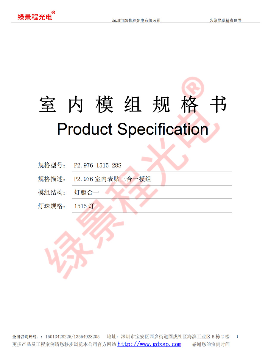 綠景程光電室內(nèi)P2.976-SMD1515-28S-250X250mm