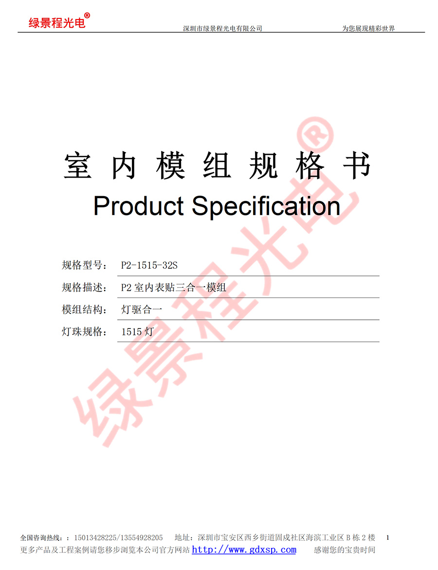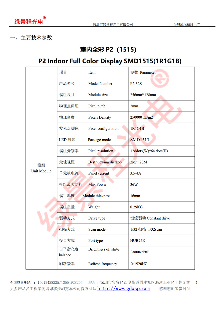 綠景程光電室內(nèi)P2-SMD1515-32S-256X128mm