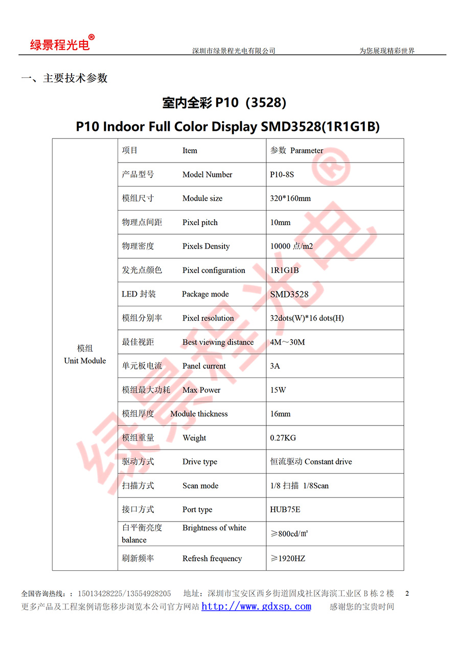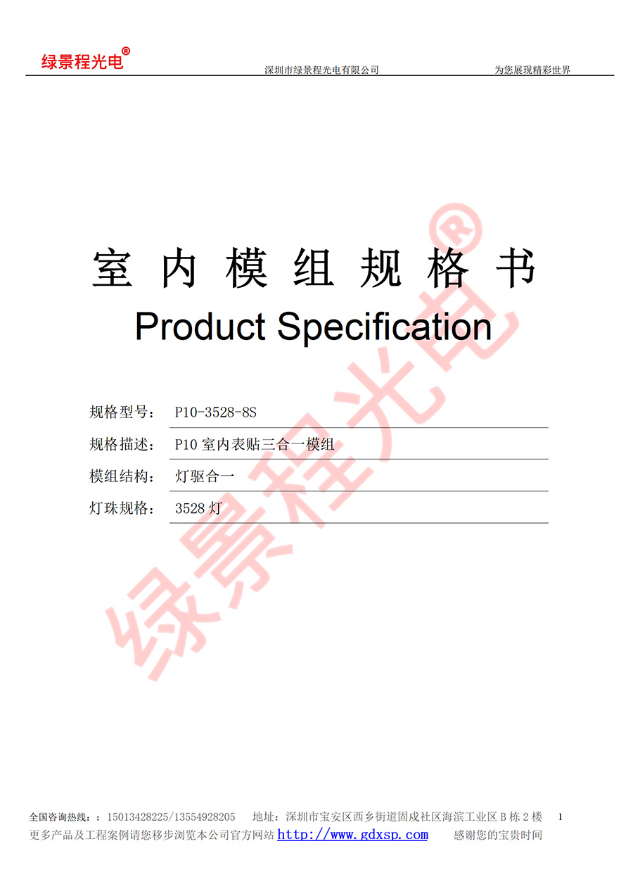 綠景程光電室內(nèi)P10-SMD3528-8S-320X160mm