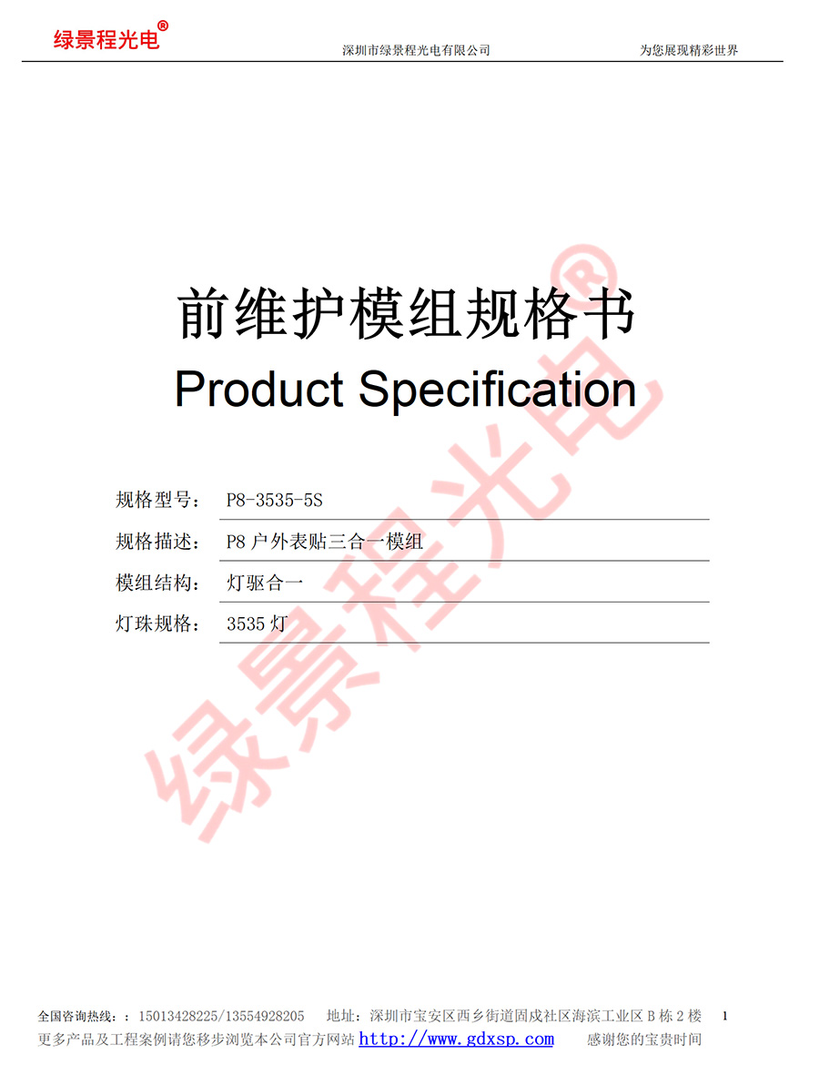 綠景程光電戶外前維護P8-SMD3535-5S-320X160mm